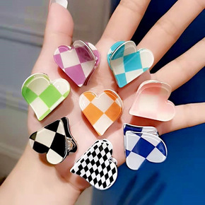 韩国时尚撞色格子爱心小抓夹发夹少女质感亚克力侧边刘...