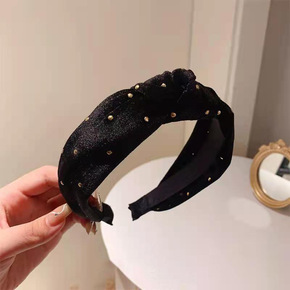 金丝绒设计感满天星发箍复古气质宽边时尚百搭小众珍珠...