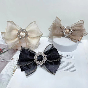 网红2021年新款网纱蝴蝶结发夹女夏季盘发抓夹后脑...