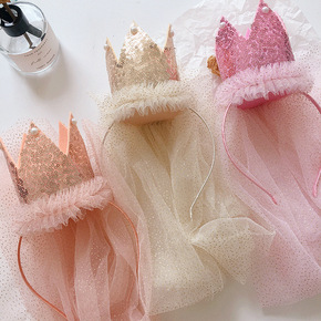 新款闪闪网纱皇冠爱心儿童头纱发箍宝宝头箍头扣...