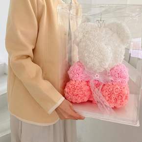批发永生玫瑰花熊情人节生日礼物送闺蜜手工皇冠头纱渐...