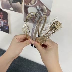 亚马逊新款镂空树叶金属发箍简约朋克街头压发头箍女珍...