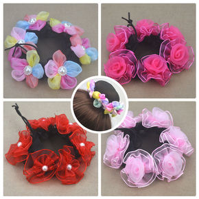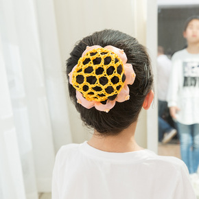 韩版盘发粗发网儿童发饰头花花朵网兜演出跳舞舞蹈盘发...