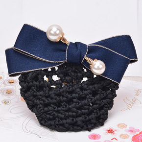 高档牛仔职业头花网兜工作上班发夹空姐护士服务员蝴蝶...