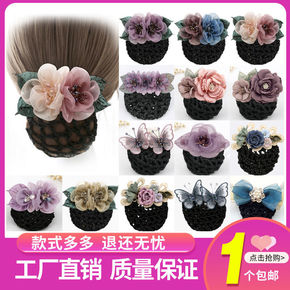 绢纱舞蝶 职业头花空姐发夹 工作发网带网兜韩国头饰...