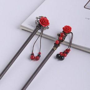 古代盘发簪子女古风发饰 流苏步摇发簪 琉璃花瓣古装...