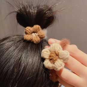 秋冬小香风奶咖色系小花毛毛头绳温柔高颜值仙女发圈简...