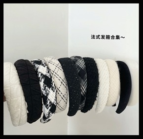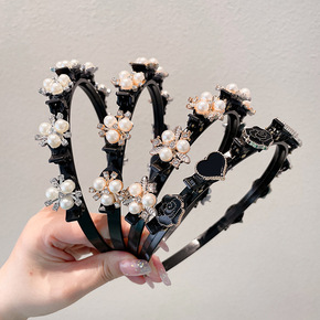 法式优雅黑色系发箍秋冬甜美珍珠发卡针织增高颅顶头箍...