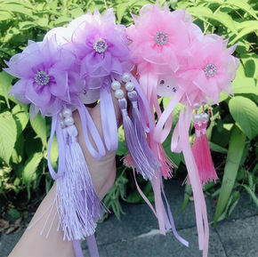 儿童古风发饰珍珠纱花朵发夹汉服流苏飘带配饰少女舞蹈...
