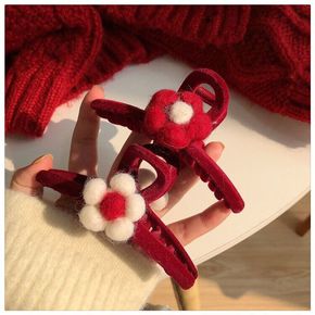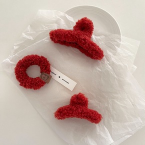 新年圣诞红色系羊羔毛发绳抓夹甜美气质发抓盘发夹子刘...