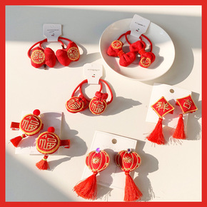 儿童新年发饰女童红色流苏发夹韩版女孩蝴蝶结发卡可爱...