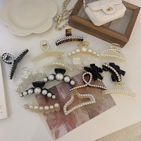 极简日韩发饰醋酸抓夹个性百搭冷淡风盘发夹珍珠夹子新...