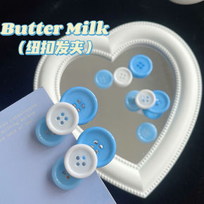 蓝色纽扣发夹ins简约创意百搭发夹日韩学生刘海边夹...