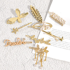 欧美跨境新品珍珠发夹超仙流苏蝴蝶五角星头饰简约百搭...