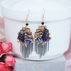 欧美复古水晶流苏耳饰品波西米亚风长款超仙海边度假夸...