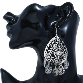 波西米亚时尚复古风 水滴流苏耳环复古雕花夸张大耳环...