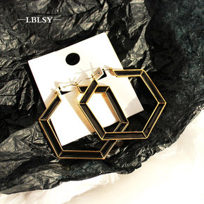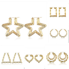 欧美夸张竹节心形几何大耳环 朋克夜店 金属 五角星...