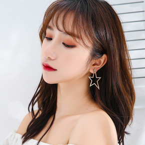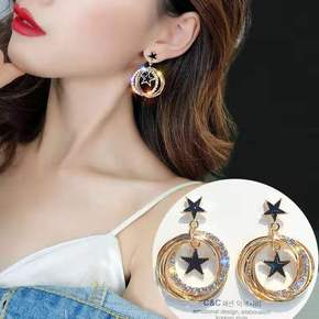 韩版网红同款夸张金色五角星大耳环显脸瘦不规则镶钻耳...