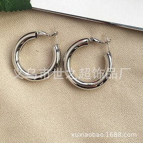 厂家直销爆款线耳环夸张大耳圈时尚耳饰钛钢圆形耳扣不...