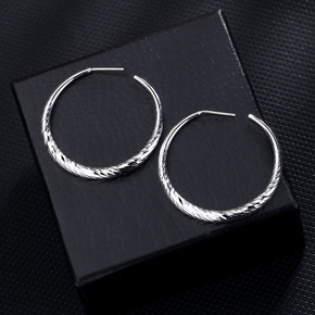925银针夸张大耳圈耳钉 欧美简约圆形大耳环耳饰 ...