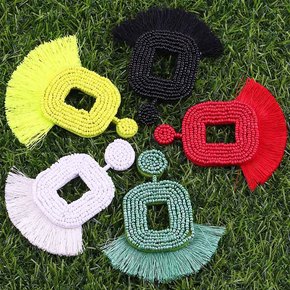 欧美流行波西米亚流苏吊坠方形大耳环个性夸张简约高品...