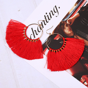 欧美夸张流苏耳环批发红色喜庆扇形流苏大耳环大牌走秀...