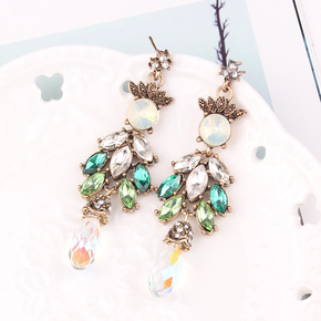 欧美水滴形夸张花藤耳坠批发 合金镂空雕花大耳环 义...