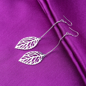 欧美夸张耳环女 甜美小清新简约耳坠长款合金树叶耳挂...