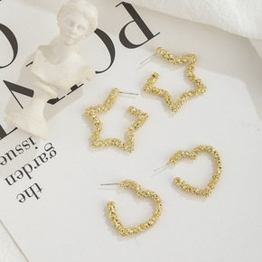 耳环欧美流行夸张不规则几何型耳环INS小众波浪沙面...