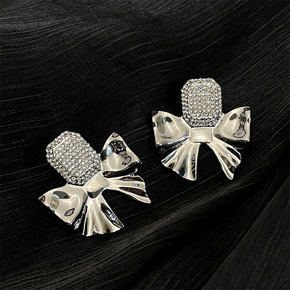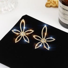S925银针韩国设计感闪钻花朵气质网红夸张大气耳钉...