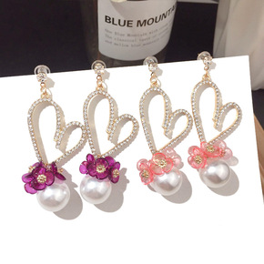 韩版网红个性爱心珍珠心形镂空夸张大耳环气质时尚简约...