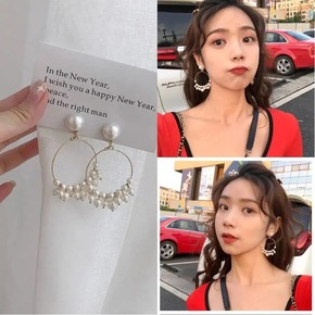 简约百搭夸张气质时尚ol耳环打圈珍珠气质长款耳钉高...