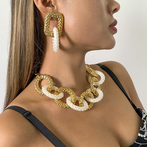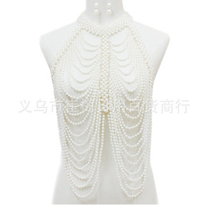 欧美夸张大气仿珍珠披肩项链复古手工串珠项链礼服配饰...