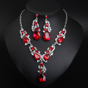 亚马逊跨境 水晶宝石闪短项链耳环套装 欧美夸张礼服...