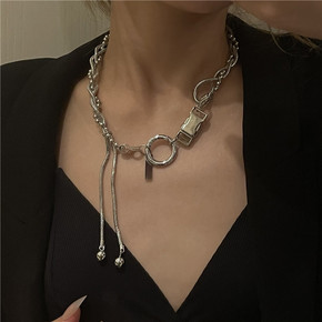 欧美夸张粗链条项链小众设计嘻哈简约百搭几何镂空双层...