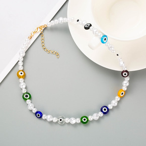 欧美跨境潮流个性夸张几何形大小珍珠恶魔之眼项链波西...