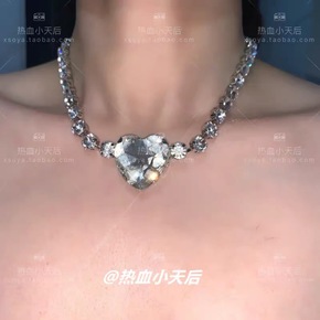 欧美复古锁骨项链颈链网红夸张大爱心水晶气质简约束颈...