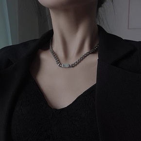 L230钛钢美人头粗链气质锁骨链时尚欧美夸张时尚颈...