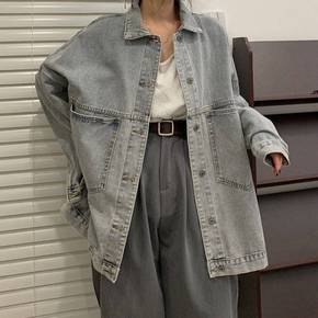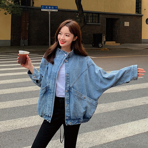 牛仔外套女韩版新款宽松牛仔外套女春秋季港味复古中长...