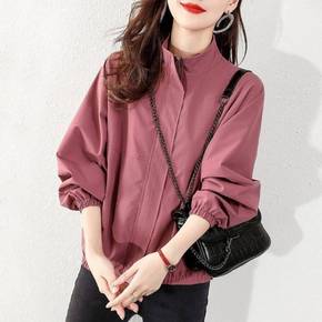 2022春秋季新款外套女上衣宽松百搭不皱简约纯色潮...