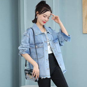 牛仔夹克外套女春装2022年新款韩版宽松时尚毛边复...