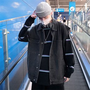 慵懒风牛仔外套男ins春秋韩版帅气潮流夹克宽松bf...