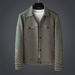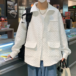 2022港风格子开衫外套男春秋宽松帅气上衣韩版潮流...