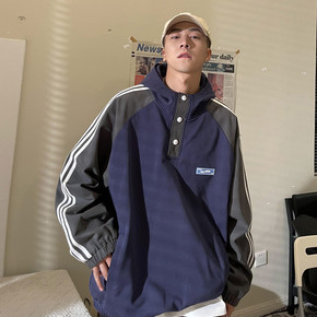 春秋假两件夹克男港风宽松痞帅嘻哈连帽外套韩版潮牌百...