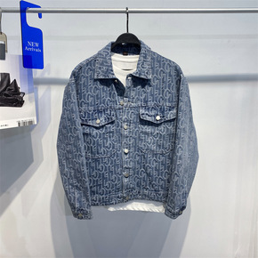 男装秋冬新款翻领工装牛仔夹克修身棉茄克青年潮牌休闲...