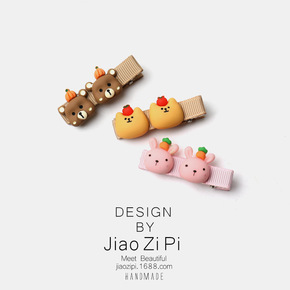 超萌日系卡通熊猫小熊发夹 网红小兔子刘海夹可爱边夹...