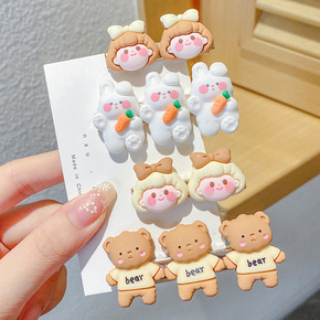 新款小熊可爱少女卡通发夹侧边夹女童超萌小兔头饰刘海...