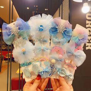 儿童蝴蝶结网纱发夹雪花刘海侧边夹韩国可爱公主头饰女...