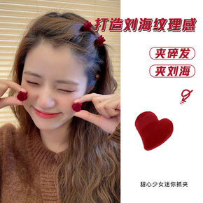 丝绒爱心绒面小抓夹少女刘海夹侧边发卡迷你夹子头饰发...