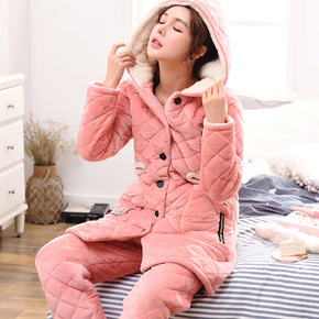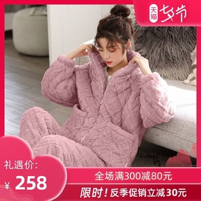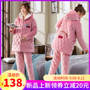 新款珊瑚绒睡衣女冬季法兰绒三层夹棉加绒加厚保暖家居...